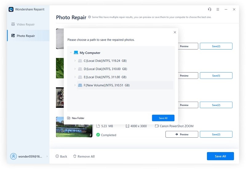 When the procedure completes, all repaired files will appear on the user’s device screen. Now the user can request reviewing files and can choose ones that are interested in restoring. Once you are satisfied and selected all required files for restoring, click on the “Save Repaired Files” button and save that image in any location on your device.